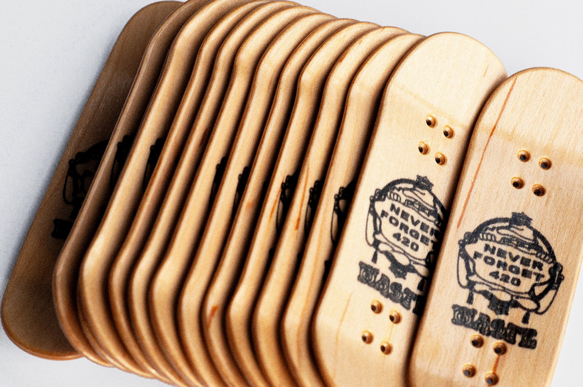 Paper graphic, all natural maple plies, wood print top logos.